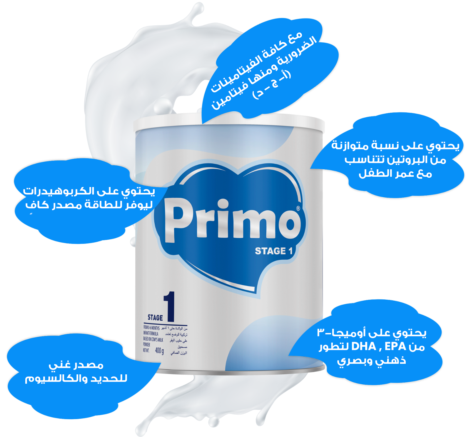 Primo 1 is infant milk from day one to six months of age. It is manufactured in the heart of France, adhering to the highest quality standards.. Primo 1 contains all the necessary nutrients for infants... The product ensures proper nutrition for a smart and strong child growth.